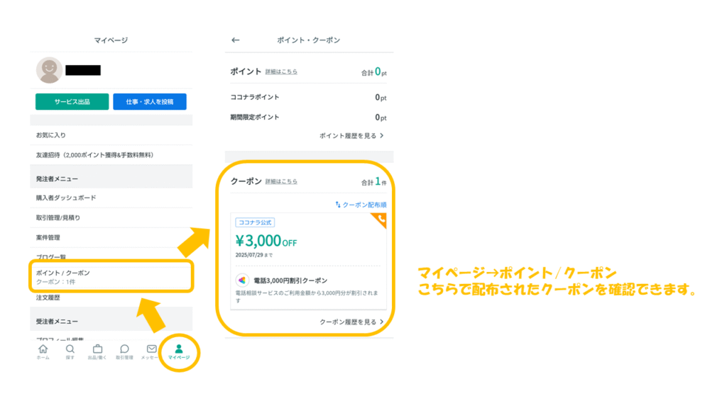そんな方でも安心して試せるのが、ココナラの“3000円分無料クーポン”の仕組みです。